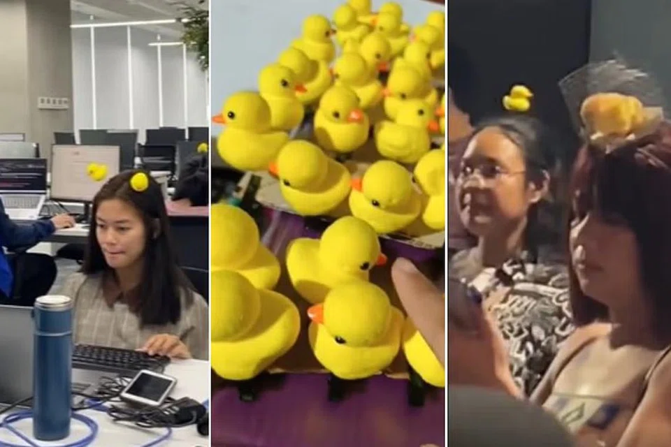 பிலிப்பீன்ஸ் மக்கள், தங்களுடைய தினசரி வாழ்க்கையில் உற்சாகத்தை ஏற்படுத்த, மஞ்சள் நிற ரப்பர் வாத்துகளுடன் இணைக்கப்பட்ட முடி கிளிப்புகளை தலையில் அணிந்து கொண்டிருக்கிறார்கள்.