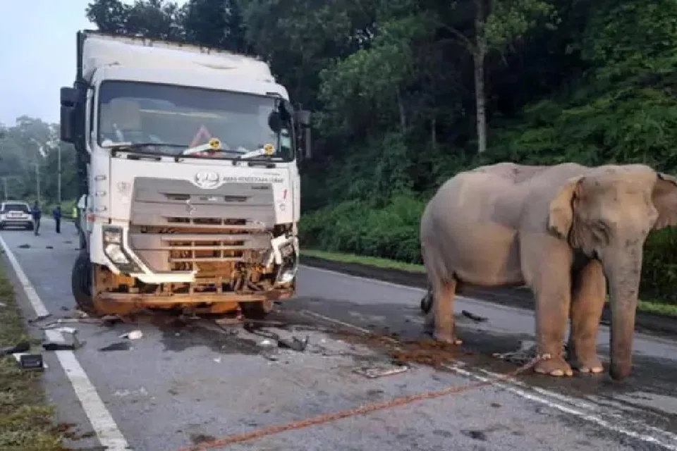 பேராக் மாநிலத்தில் உள்ள நெடுஞ்சாலையில் யானைக் கன்று மீது லாரி ஒன்று மோதியது.