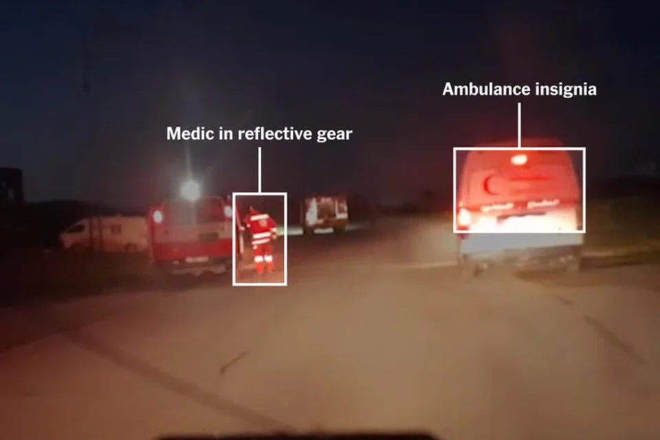 மாண்ட ஊழியர்கள் பயணம் செய்த ஆம்புலன்ஸ், தீயணைப்பு வாகனங்களில் அவசரநிலையை உணர்த்தும் விளக்குகள் எரிந்த நிலையில் இருப்பதையும் இஸ்ரேலிய ராணுவத்தினர் அவற்றை நோக்கிச் சரமாரியாகத் துப்பாக்கிச்சூடு நடத்தியதையும் அந்தக் காணொளி காட்டியது.