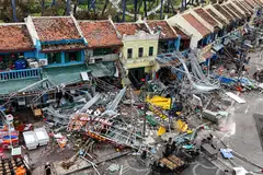கட்டடங்கள் பலத்த சேதத்துக்குள்ளானதாகவும் வர்த்தக, தொழில் நடவடிக்கைகளில் இடையூறு ஏற்பட்டதாகவும் தெரிவிக்கப்பட்டது.