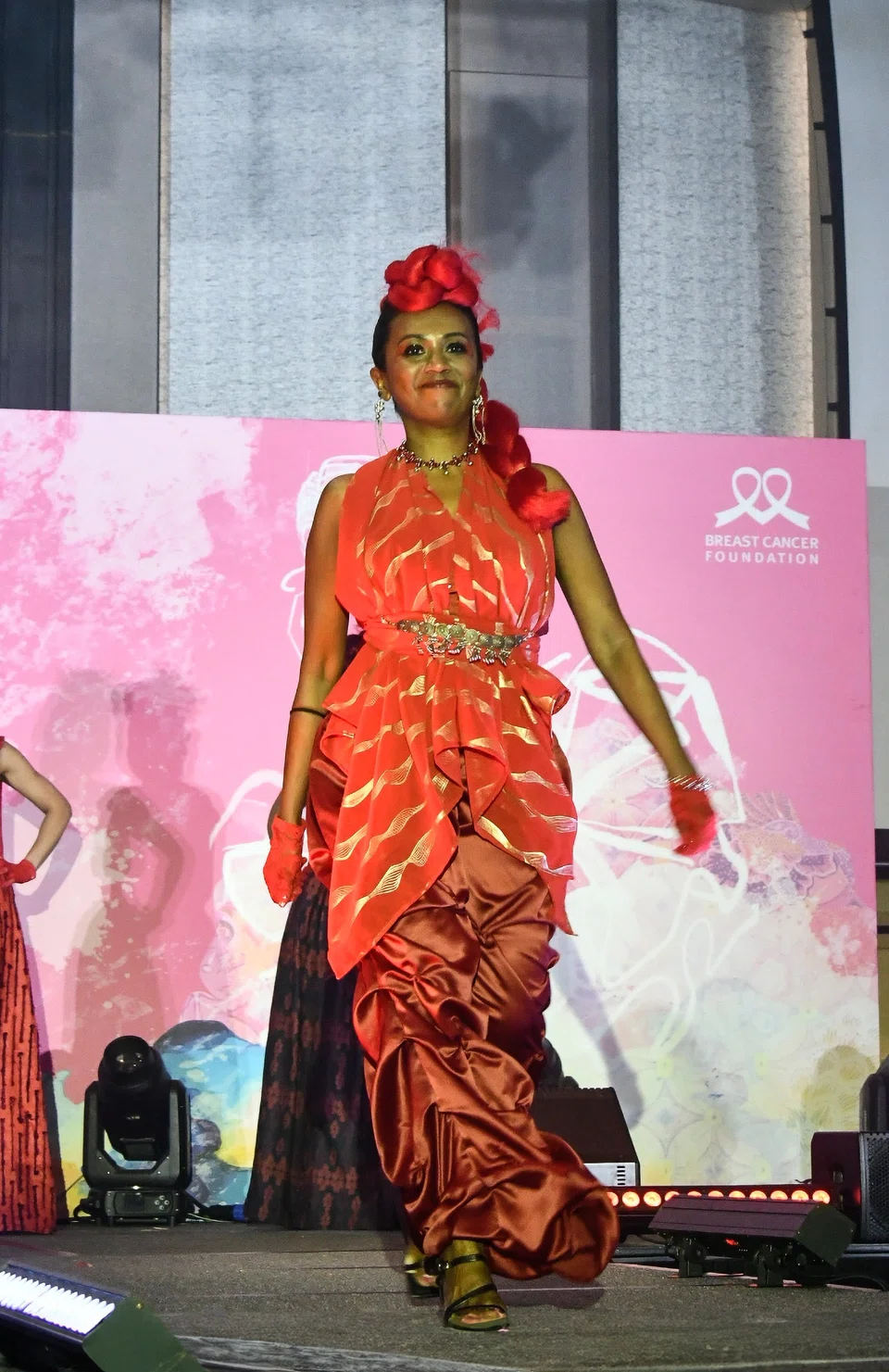‘இளஞ்சிவப்பு வீராங்கனைகள்’ (Pink Warriors) என்று அழைக்கப்படும் மார்பகப் புற்றுநோயிலிருந்து மீண்ட பெண்கள் 20 பேர், நிகழ்ச்சி மேடையில் ஆடை அலங்கார நடையின்போது தங்கள் திறமையை வெளிப்படுத்தினர்.