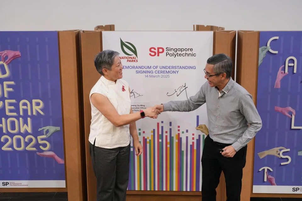 ‘கேட்டலிஸ்ட் 2025’ நிகழ்ச்சியில் சிங்கப்பூர்ப் பலதுறைத் தொழிற்கல்லூரியின் கட்டடக்கலை மற்றும் கட்டமைக்கப்பட்ட சுற்றுச்சூழல் வளாகம் (School of Architecture and the Built Environment), தேசிய பூங்காக் கழகம் இடையே ஒரு புரிந்துணர்வு ஒப்பந்தம் மார்ச் 14ஆம் தேதி கையெழுத்தானது.