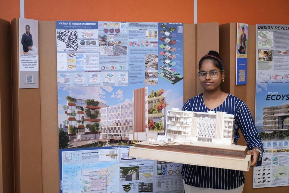 அதை அடிப்படையாகக் கொண்டு ‘தி கேட்டலிஸ்ட் ஜெனஸிஸ்’ (The Catalyst Genesis Institution) கல்விக் கழக வளாகத்துக்கான வடிவமைப்பை கிட்டத்தட்ட ஓராண்டு காலத்தில் உருவாக்கினார் லோபா.